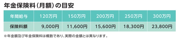 厚労省の資料によると年収120万円の場合、厚生年金保険料の月額は9000円が目安となります。