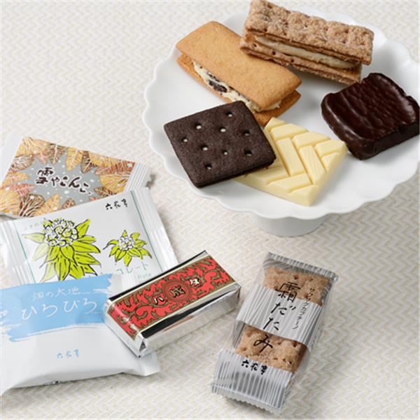 こちらは、カジュアルな手土産におすすめしたいリーズナブルなギフトです。「マルセイバターサンド」、「霜だたみ」、ホワイトチョコクリームをブラックココアビスケットでサンドした「雪やこんこ」、「畑の大地ひろびろ」、「ホワイトチョコレート」が1個ずつ入っています。615円というお手頃な価格で六花亭の定番お菓子をたっぷり味わえるので、自分へのプチご褒美にも使えますね。