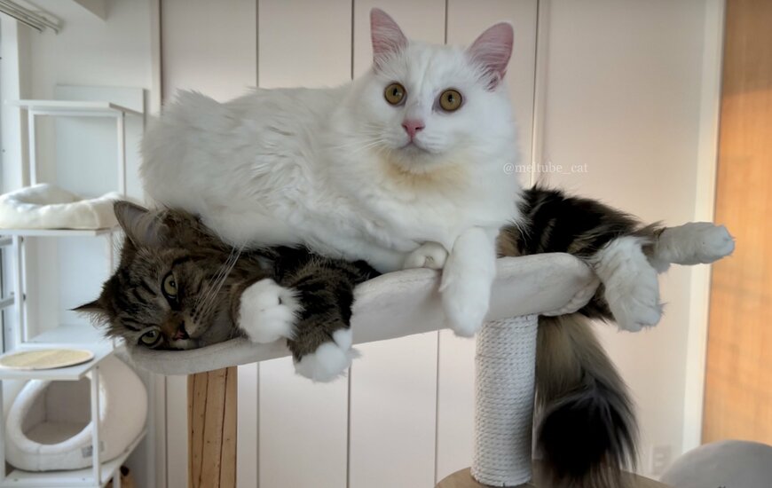 投稿写真には、キャットタワーに登っている2匹の姿がありますが……?