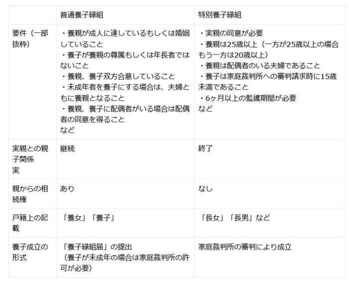 では2種類の養子縁組はどのように違うのでしょうか?