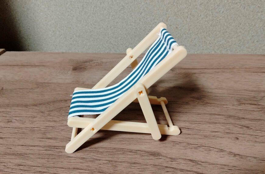 1/12スケールの「ミニチュアビーチチェア」です。シルバニアファミリーの人形を座らせるのにちょうどいいサイズ感となっています。