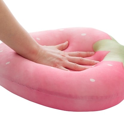 巨大ないちごがかわいいモチモチクッションです。部屋をファンシーな雰囲気にしてくれそうです。