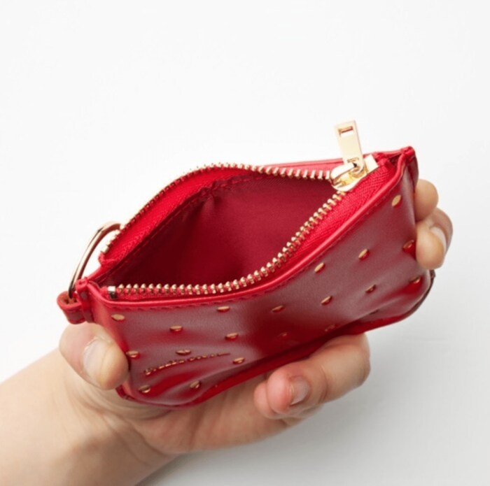 2. 赤い生地にゴールドのドットの型押しが可愛すぎの「ミニカードケース」