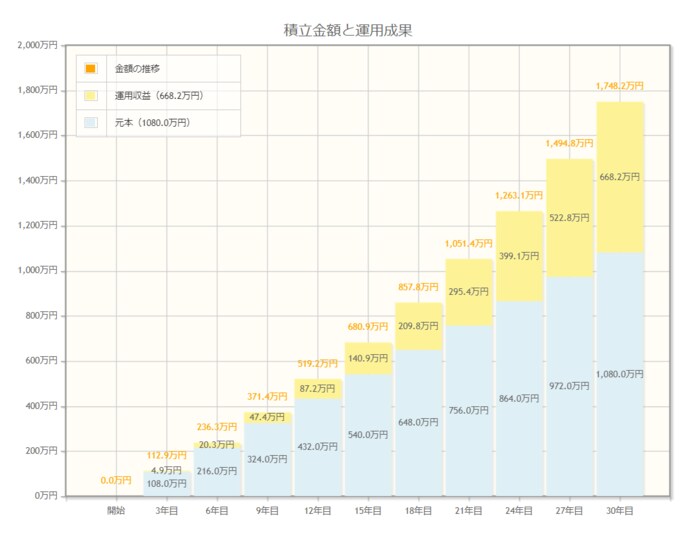 30年間運用することで約1700万円になります。