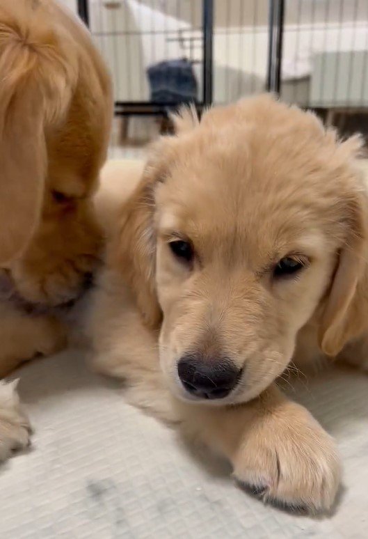 ママ犬にお世話をしてもらう子犬の、ほほえましいリアクションがTwitterに投稿され注目を集めています。