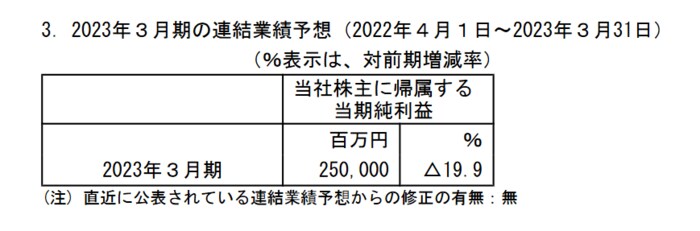 2023年3月期の連結業績予想は2500億円です。