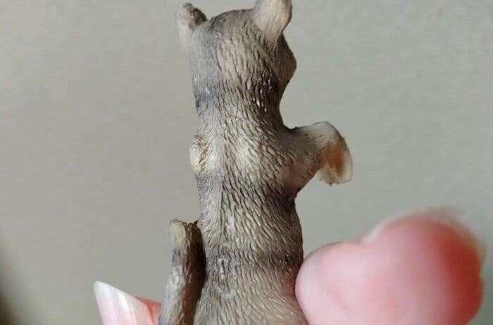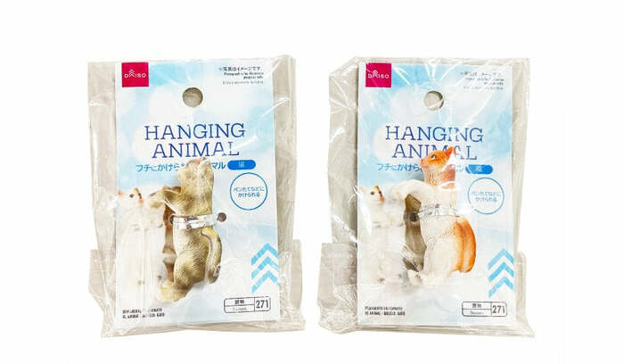 こちらがダイソーで販売されている「フチにかけられる猫のフィギュア」です。アッシュブラウンとアンテイークブラウンの2種類があります。
