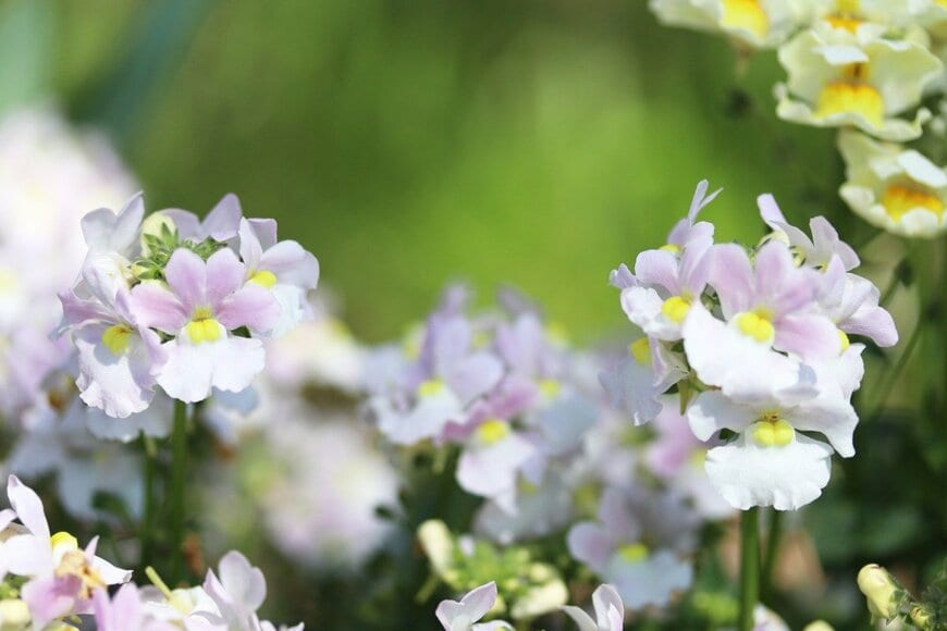 ネメシアはカラフルな花色が特徴の植物。ゼラニウムと、やや似た雰囲気もありますが、花の質感や色の違いが微妙に異なるため華やかな雰囲気になります。※参考価格:200~800円前後(3号ポット苗)