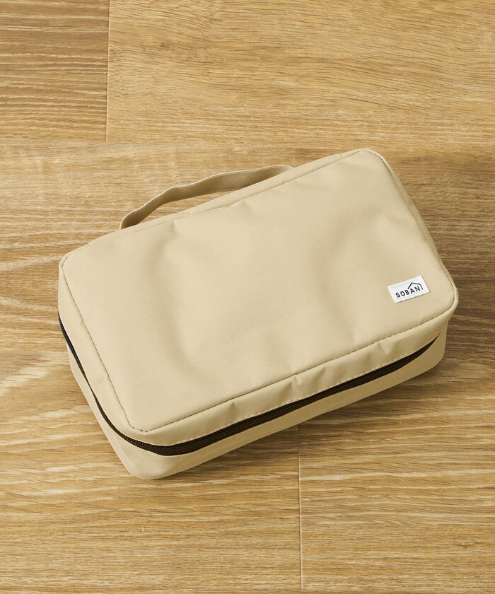 本来は、非常時に必要備品類を持ち出しやすいようにまとめておく防災ポーチですが、シンプルな形状とナチュラルなベージュカラーのため、普段の持ち歩き用ポーチにするのもよいでしょう。中には小分け収納用のポケットなど、きめ細やかな工夫がされており、ちょっとした“お泊りセット”も作れそうですね。