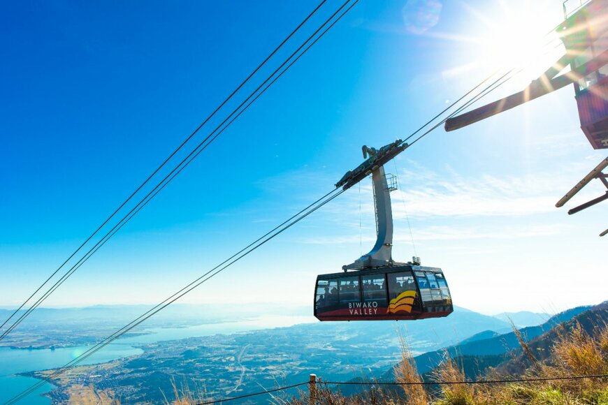びわ湖バレイは、標高1100メートル地点にあるレジャースポット。晴れている日は、真っ青な空と琵琶湖を、遮るものなしで一望できます。