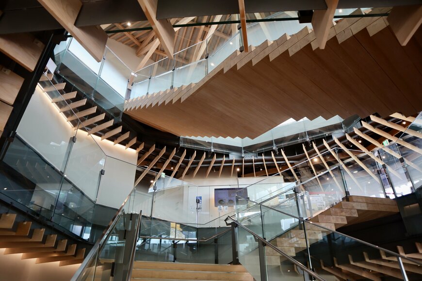 建物の設計は、新国立競技場や高輪ゲートウェイ駅などを手がけた、日本を代表する建築家・隈研吾氏によるもの。静岡県産の木材をふんだんに使用しており、日本平の自然景観と調和した木造施設となっています。