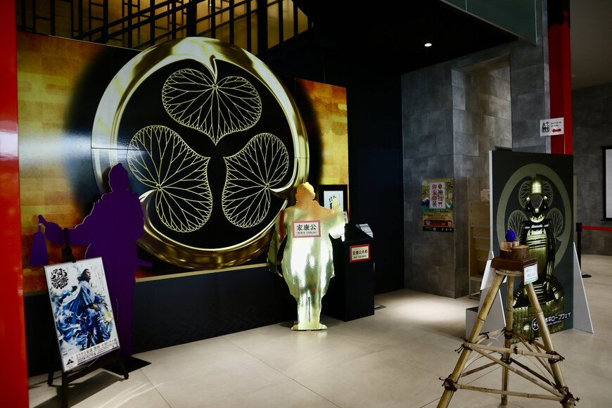 建物の中に入ると、「どうする家康」のフォトスペースがありました!徳川の家紋をバックに等身大の家康公パネルと写真を撮ったり、家康公の手形まで見ることができます。ロープウェイに乗る直前まで楽しめそうですね。