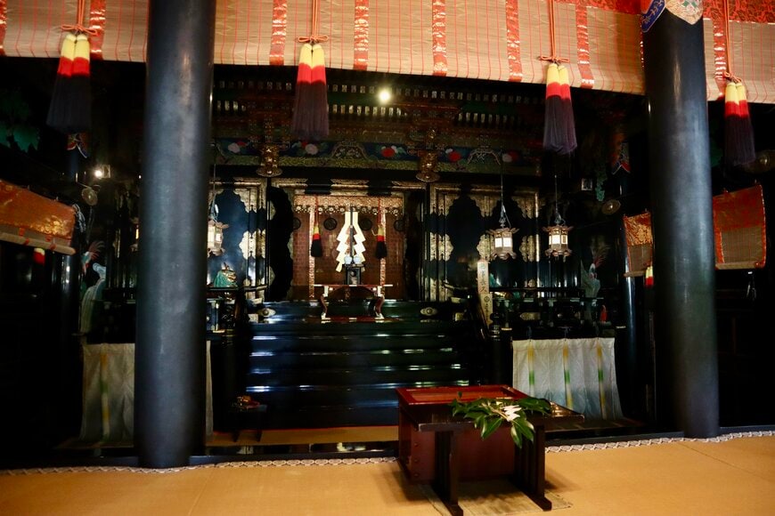 国宝に指定されている総漆塗、極彩色の「御社殿」。一般の方は通常入れませんが、ご祈祷や結婚式の際には昇殿することができます。今回は特別に正式参拝させていただけることになりました。