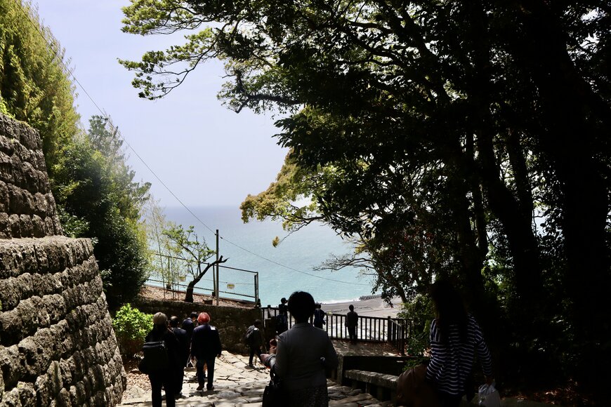 ここからは久能山東照宮の入り口である山下石鳥居まで、17曲がり・1159段の石段を降りていきます。1957年(昭和32年)に日本平ロープウェイが開通するまでは、この表参道が唯一の参拝路だったそうです。