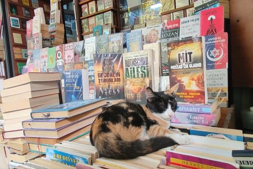 トルコ・イスタンブールの書店で撮影された「本の上でくつろぐ猫」がツイッター上で話題になっています。