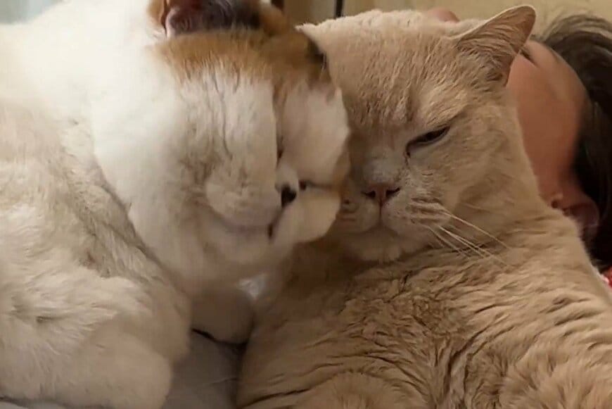 動画の終盤には、お顔をくっつけ「ウットリ」とした表情を浮かべる2匹の姿がありました。2匹のようすからは仲の良さが手に取るように伝わってきます。