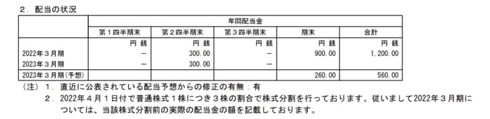 - 2023年3月期・中間配当:300円