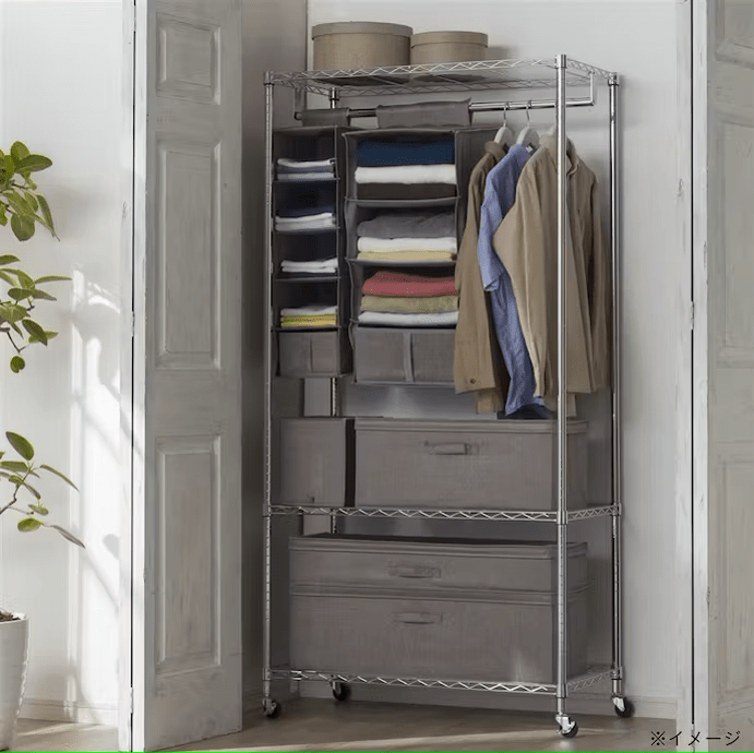 大人の衣服は、出かける先のバリエーションが増えるほどに増えていきます。どのようにしまったらよいのか困ってしまう時、新しい使いやすい収納付ハンガーラックがあると、とても重宝しますよ。