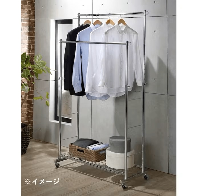 「パイプハンガープロ ダブル N57」は、キャスター付きのハンガーラックです。前後で2つの高さのバーがあり、シャツとジャケットなど仕分けがしやすいつくりになっています。