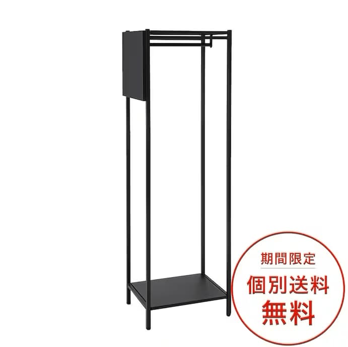 サイドパネル付きアイランドハンガーラック ブラック 49×36.5×152.5cm