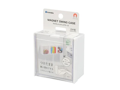 キッチンの中で置き場所に困る輪ゴムや爪楊枝、袋止めクリップなどの小物収納にぴったりのアイテムです。マグネットが付いており、冷蔵庫などに簡単に装着可能。スイングタイプのポケットなので、使いたいものがサッとスムーズに取り出せます。透明ケースだから収納物が見えて取り出しに迷うこともありません。