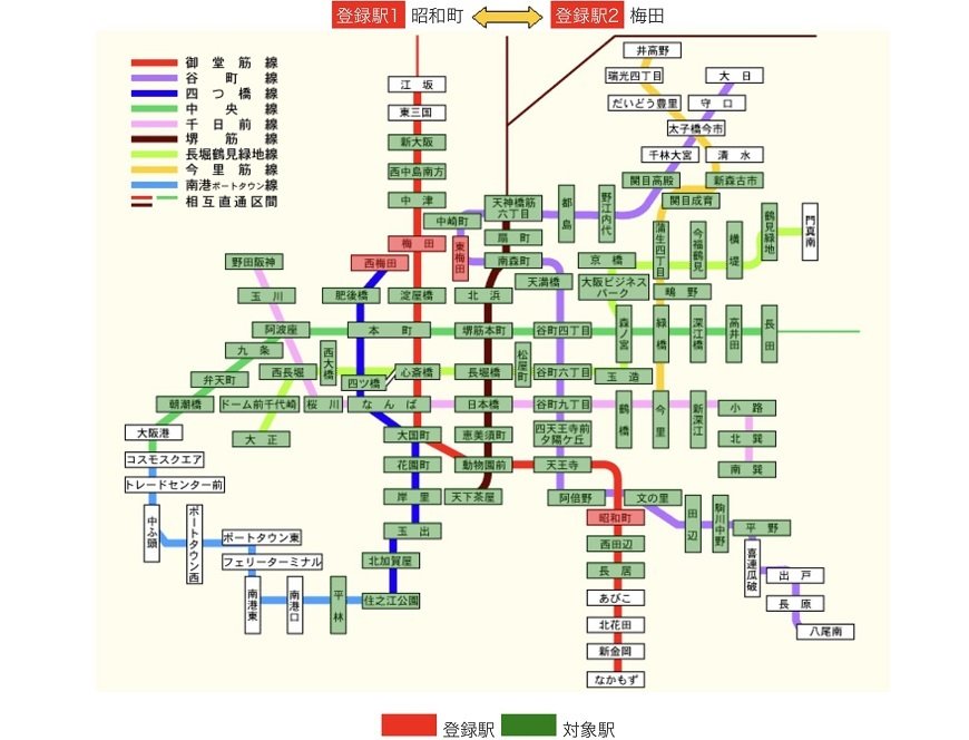 *特例で梅田駅は東梅田駅、西梅田駅と同駅扱いをしますので、梅田駅を登録駅にした場合は、東梅田駅、西梅田駅も同時に登録駅となります。