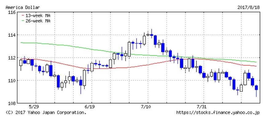 北朝鮮およびトランプ政権問題を抱える市場ですが、今週25日にはジャクソンホール会議でFRBイエレン議長とECBドラギ総裁の講演が行われます。両者の発言次第では大きな値動きが生じる可能性もあります。