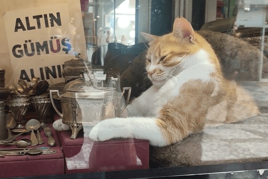 「ふわふわツヤツヤ子猫が見つめる先には、ショーウィンドウの一角を占領する猫の姿。映えるネコ動画を撮るならイスタンブールへ」というコメントとともに投稿されたのは、20秒の動画でした。