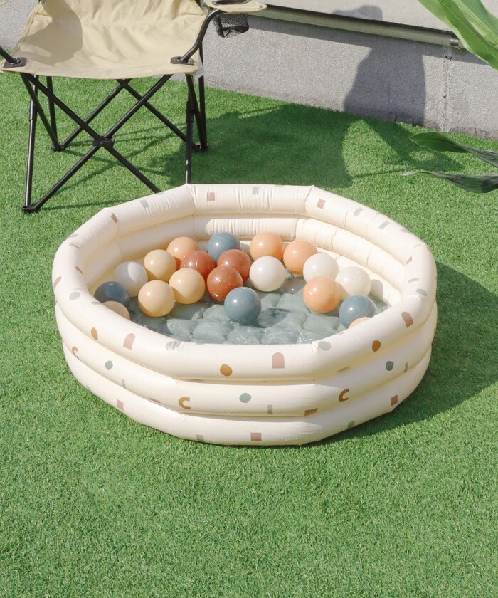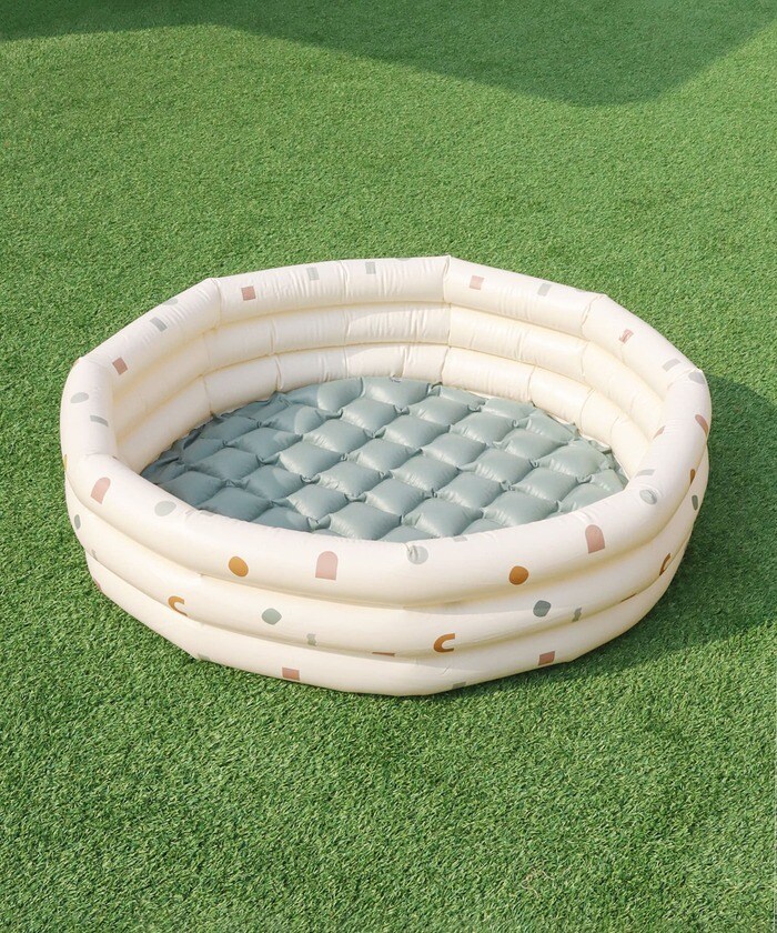 クリーム色がかわいらしい「ビニールプール」です。底の部分がエアクッションになっているので、肌さわりが優しく、快適に遊ぶことができます。