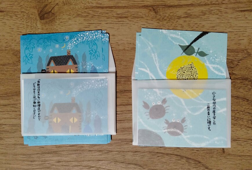 「やまなし」も「注文の多い料理店」も小学校の教科書に掲載されている作品です。有名な作品がデザインに使われているのは嬉しいですね。