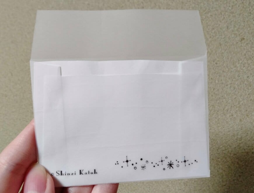 半透明の封筒にも「山猫軒」のロゴが入っています。「当軒は注文の多い料理店ですからどうかそこはご承知ください」という「注文の多い料理店」の有名なフレーズがデザインされているのも素敵です。