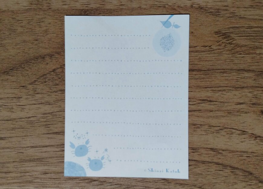 罫線部分にもやまなしとカニがデザインされています。やまなしが沈んでくるのを待っているようなカニたちがかわいいです。