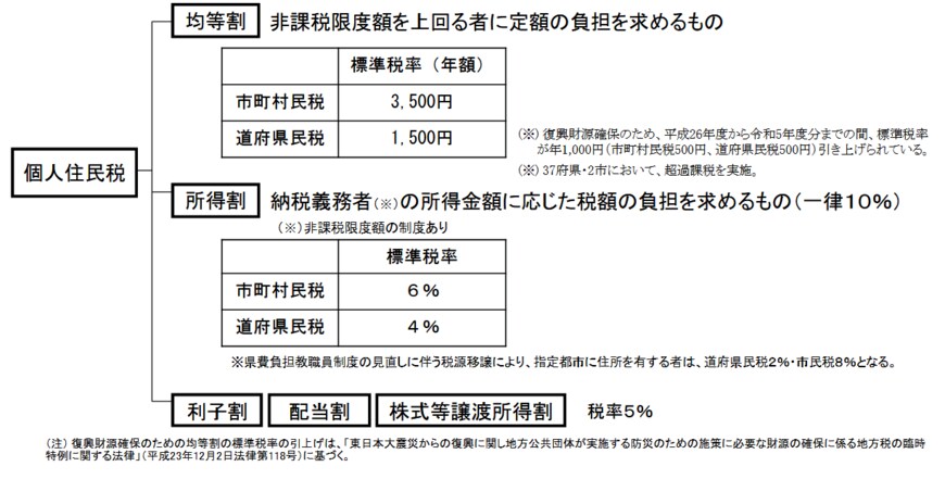 住民税には、所得額にかかわらず個人が等しく負担する「均等割」と、所得額に応じて負担する「所得割」があります。