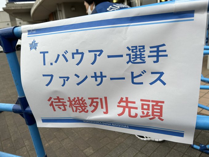 話題になっているのは、4月2日に横須賀スタジアムで開催されたバウアー投手のサイン会(先着200名)での出来事。12時からのスタートだったのですが、前日の21時から並んだファンがいたそう。