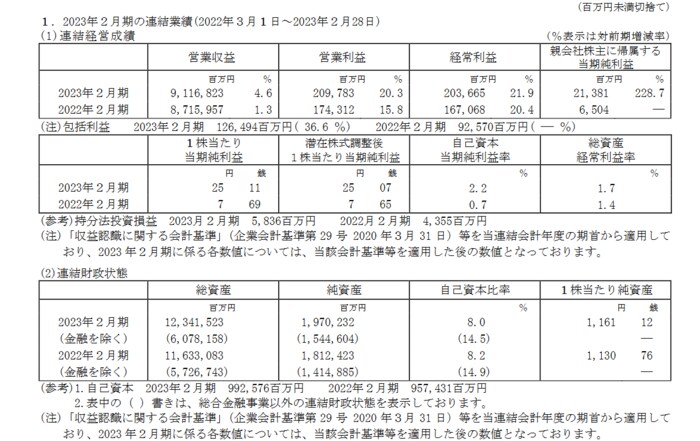 出所:イオン株式会社「2023年2月期 決算短信[日本基準](連結)」