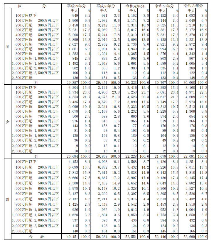 一方、最も多い給与階級は「300~400万円以下:914万4916人」で17.3%です。
