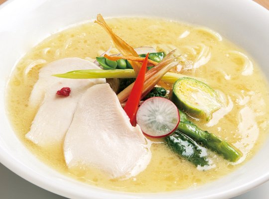 2016年にはミシュランガイドにも選出されたという「銀座 篝(かがり)」は、ラーメンとは思えないほど上品な見た目の「鶏白湯Soba」が看板メニュー。コクの中にもさっぱりとした後味を堪能できる鶏白湯スープだけでなく、季節に応じて変わるという野菜トッピングも見逃せない一品です。