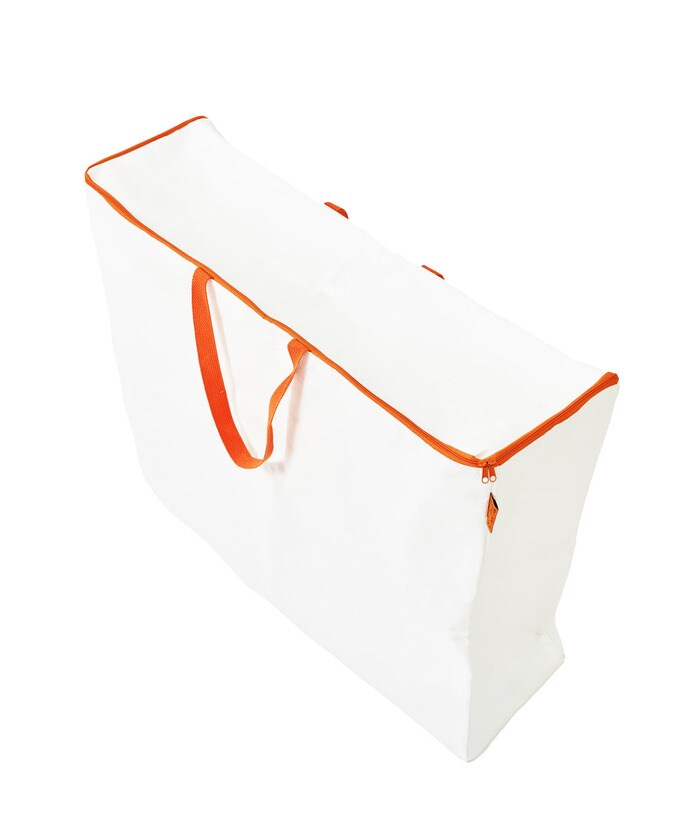 衣類や毛布などの収納や、衣替えの際に便利な大きなバッグです。お部屋の間を移動するときや重たいものの持ち運びに便利なハンドル付き。使わないときはコンパクトに畳んでおけるので場所をとりません。