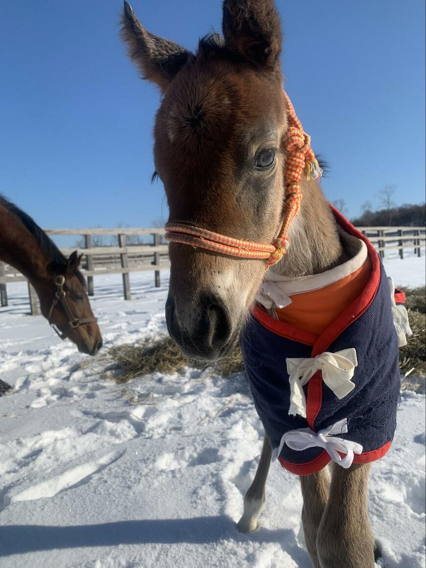 今年1月に誕生したまめちゃんは、母に似たクリクリの目が特徴的な仔馬です。