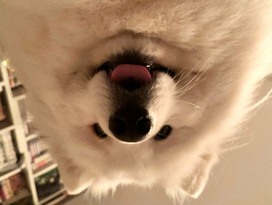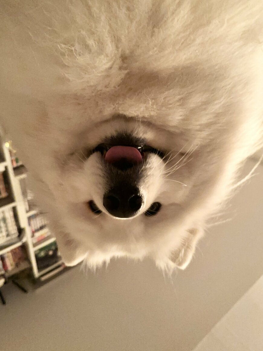 とびきりキュートな笑顔で飼い主さんを覗き込む、サモエド犬さんの写真がTwitterに投稿され注目を集めています。