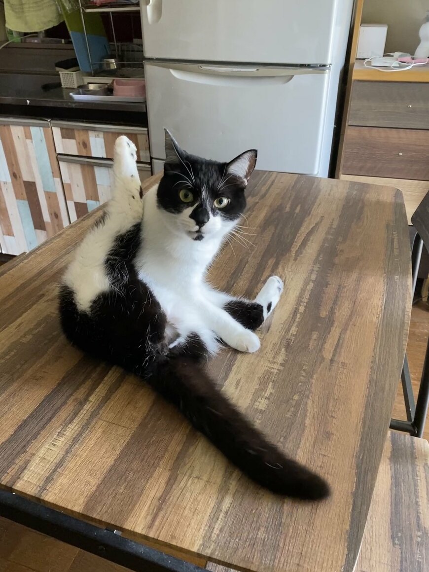 注目を浴びているのは猫の「モズク」ちゃん。白黒のきれいなハチワレ柄が印象的な女の子です。