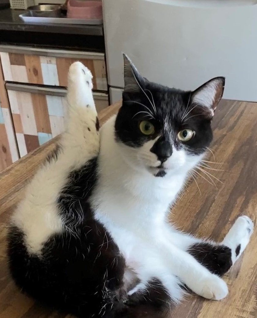 「行ってきます」と言ったら…猫ちゃんのポーズがかわいい