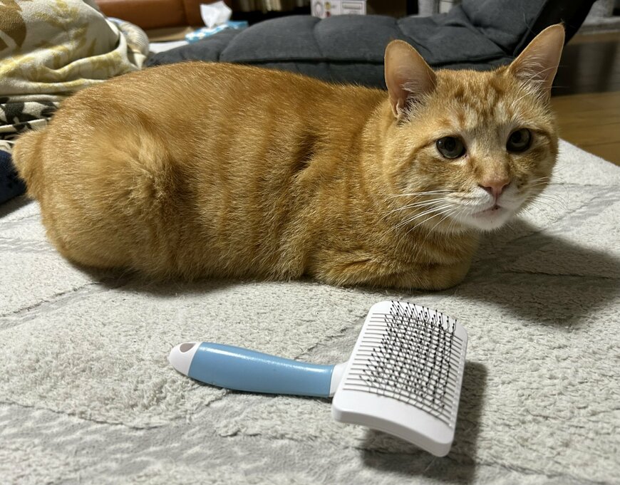 この日のリチャードくんは、ブラッシングを待ちわびていた様子。ブラシの前で香箱座りをし「準備OK!」といった具合です。