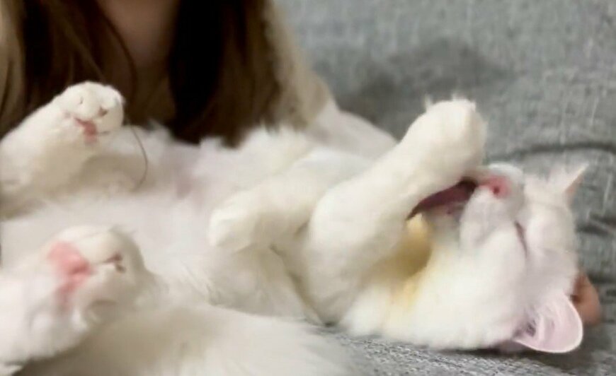 「ソファでゴロゴロしてたら腕の中におさまって一緒にゴロゴロし始めた」というコメントとともに投稿されたのは1枚の動画でした。