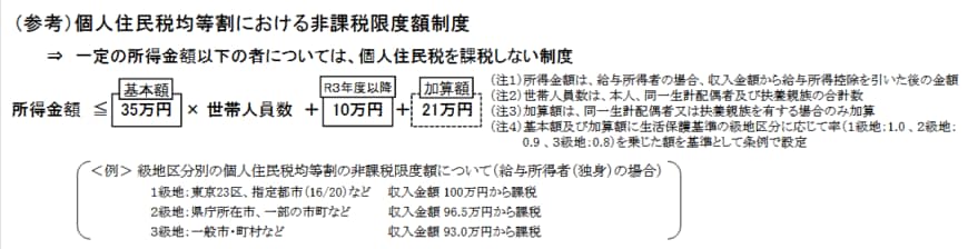 自治体によっては、均等割額が非課税となる合計所得金額が異なる場合がありますので、詳しくはお住まいの自治体で確認しましょう。