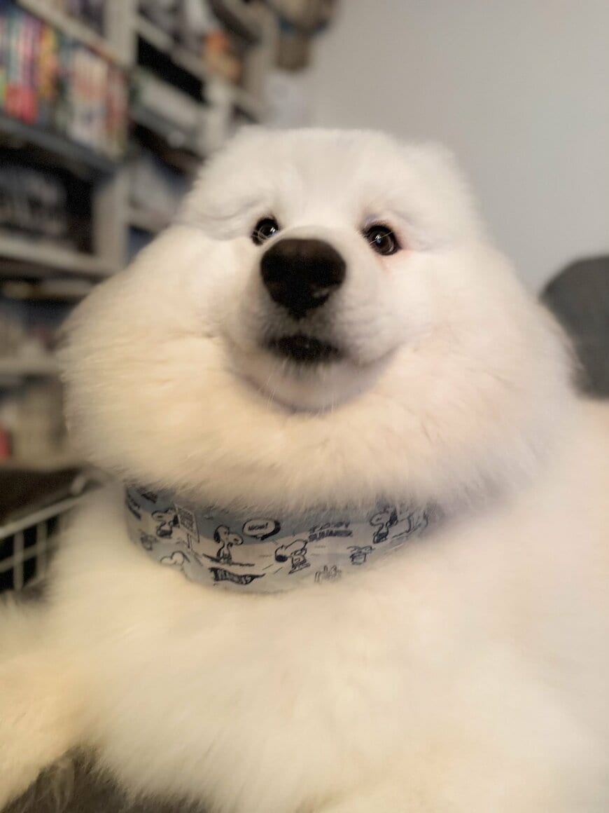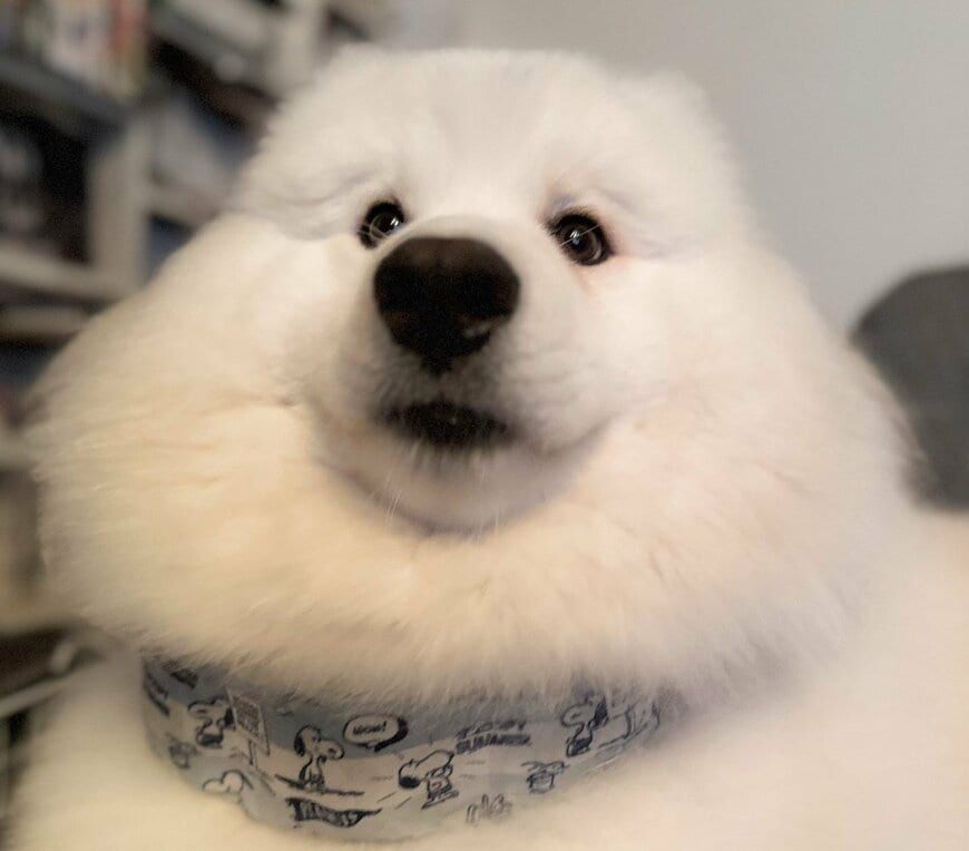 注目を浴びているのは、サモエド犬の「ソラン」くん。綿雲のようにふわふわとした毛並みがチャーミングな男の子です。