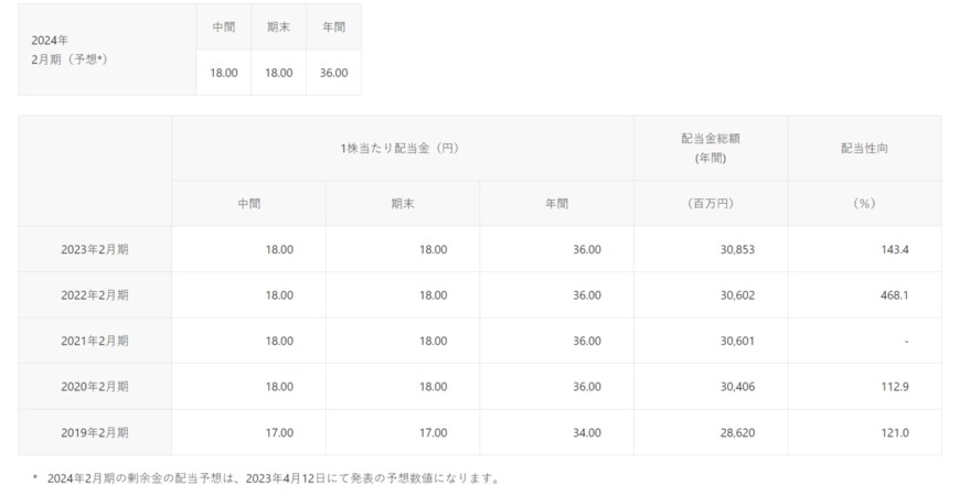 しかし、もともと配当性向が100%を超えていたイオンでは、2022年10月に発表された決算における業績予想(年間純利益予想が250〜300億円)と毎年300億円を超える配当総額を踏まえると、2023年2月期も配当性向100%超となる可能性が高いとの見方が投資家の買いを鈍らせ、頭打ちとなっていたと思われます。