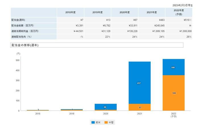 4. 日本郵船の配当金の推移を確認