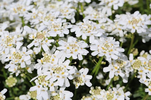 イベリスは小花が集まって丸い形になる姿が可憐。純白の花が光に照らされると、周りを明るく華やかにしてくれます。過湿が苦手なので乾かしぎみに育てましょう。※参考価格:200~400円前後(3号ポット苗)