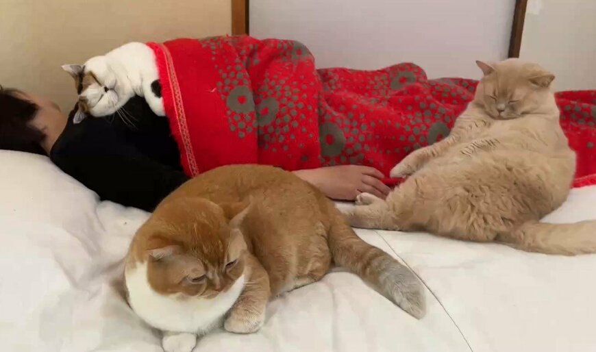 まるで「磁石」のように猫ちゃんを引き寄せるママさん。3匹の表情から「幸せ」が伝わる癒しの映像がTwitterに投稿され、注目を集めています。